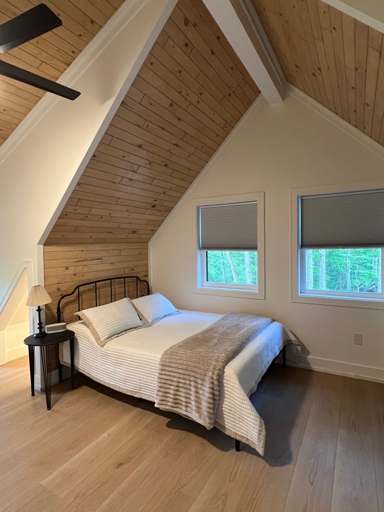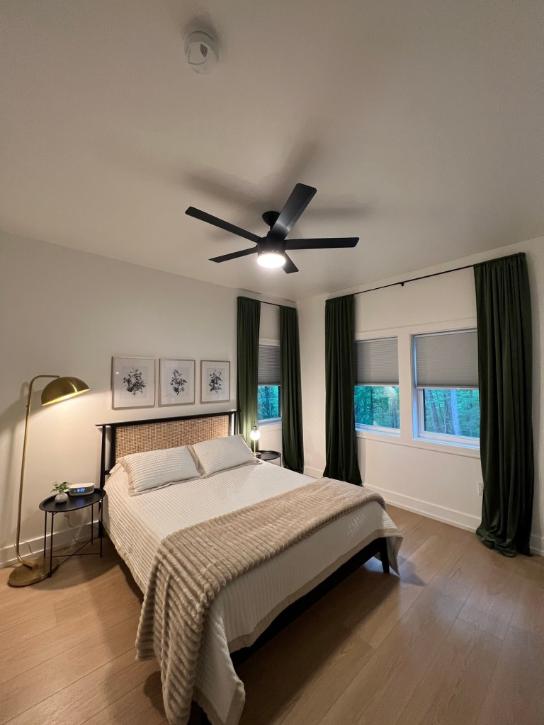 Each bedroom is equipped with a TV, ceiling fan, black out blinds, charging station, sound machine, alarm clock, as well as extra pillows and blankets.