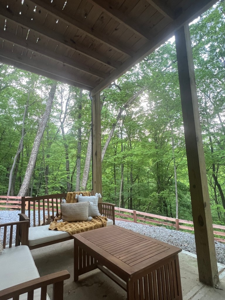 Fire pits are located near the parking area (wheelchair accessible) and outside of the lower level. A hot tub is located on the lower level patio. Patio furniture is available on the front and back porches. Outdoor dining available on the main floor deck.